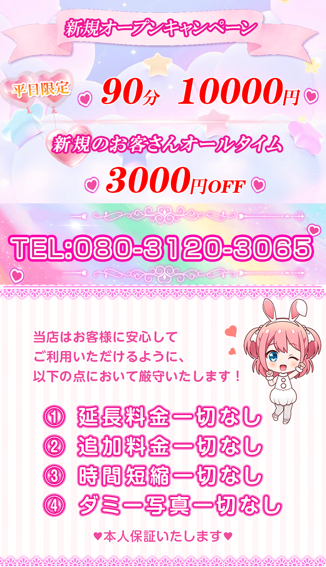 当店では、安心してリラックスできる技術はもちろんのこと、セラピストの容姿や気配りにも厳しい基準を設けています。お客様全員に、「この店には美人しかいない」「どのセラピストも優しくて丁寧」「いつ来ても身も心もリラックスできる」と言っていただけるようなお店を本気で目指しています
